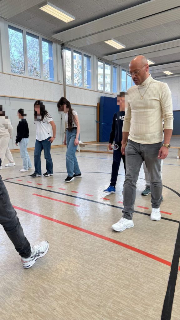 Unser Förderschullehrer Herr Stalbovs stellte den Projektunterricht der 6a gehörig auf den Kopf. Tanzen stand heute auf der Tagesordnung. So konnte sich die Klasse in 90 Minuten nicht nur die Grundschritte des Disco Fox und Tango aneignen. Darüber hinaus bot sich ein wunderbares Lernfeld für das Soziale Lernen an – sein (tanzendes) Gegenüber achten, Rücksicht nehmen und Grenzen wahrnehmen und respektieren.
