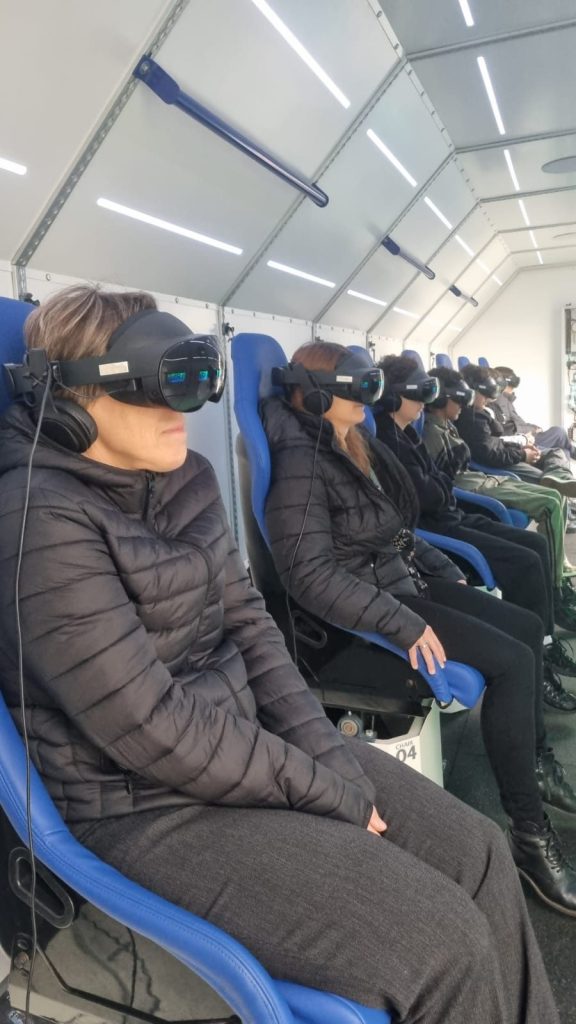 Jein. Im Rahmen des Projektunterrichts beschäftigte sich Jahrgang 7 zuletzt mit dem Thema Weltraum. Passend dazu konnte mit der Deutschen Raumfahrtagentur im DLR ein interessanter Partner gewonnen werden. Deren eigener SPACEBUZZ ONE ist ein begehbarer High-Tech-LKW in Form einer Rakete. Das Innenleben – noch viel spannender. Neben Weltraumdesign befindet sich dort die neuste VR-Technologie: Mithilfe eines beweglichen Sitzes und einer VR-Brille können so virtuelle Weltraumabenteuer erlebt werden. Schülerinnen und Schüler sowie die Lehrkräfte hatten so die einmalige Möglichkeit hautnahe Einblicke ins Universum zu erhalten, insbesondere die Betrachtung unsere Heimatplaneten aber auch ökologische Aspekte wie der menschengemachte Klimawandel können aus Sicht von Astronautinnen und Astronauten nachvollzogen werden.